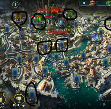 The stronghold is important BUT choke points can solve and save us. In the stronghold need at least 1 high team. Most important is Defense Tower 5 and Defense Tower 4. These 2 choke spots can control and protect our Stronghold. Each Tower has 2 Defense slots. We need our highest and best teams here. Next we need at least 1 high team in the Stronghold for back up if needed.